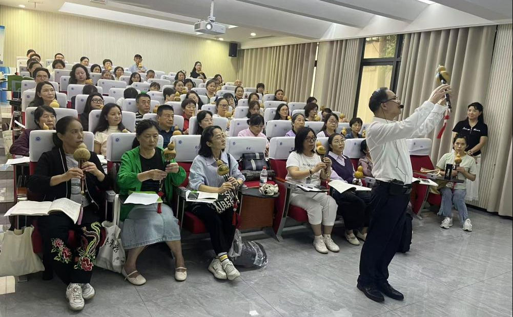 課堂上,宋老師將指法口訣清晰呈現(xiàn)于PPT,逐字逐句帶練;課后,他主動為技巧薄弱的學員“加餐”,一句“慢慢來,音樂最懂耐心”,溫暖了許多初學者的心。如今,不少曾不識簡譜的學員,已能流暢吹奏完整樂曲。
