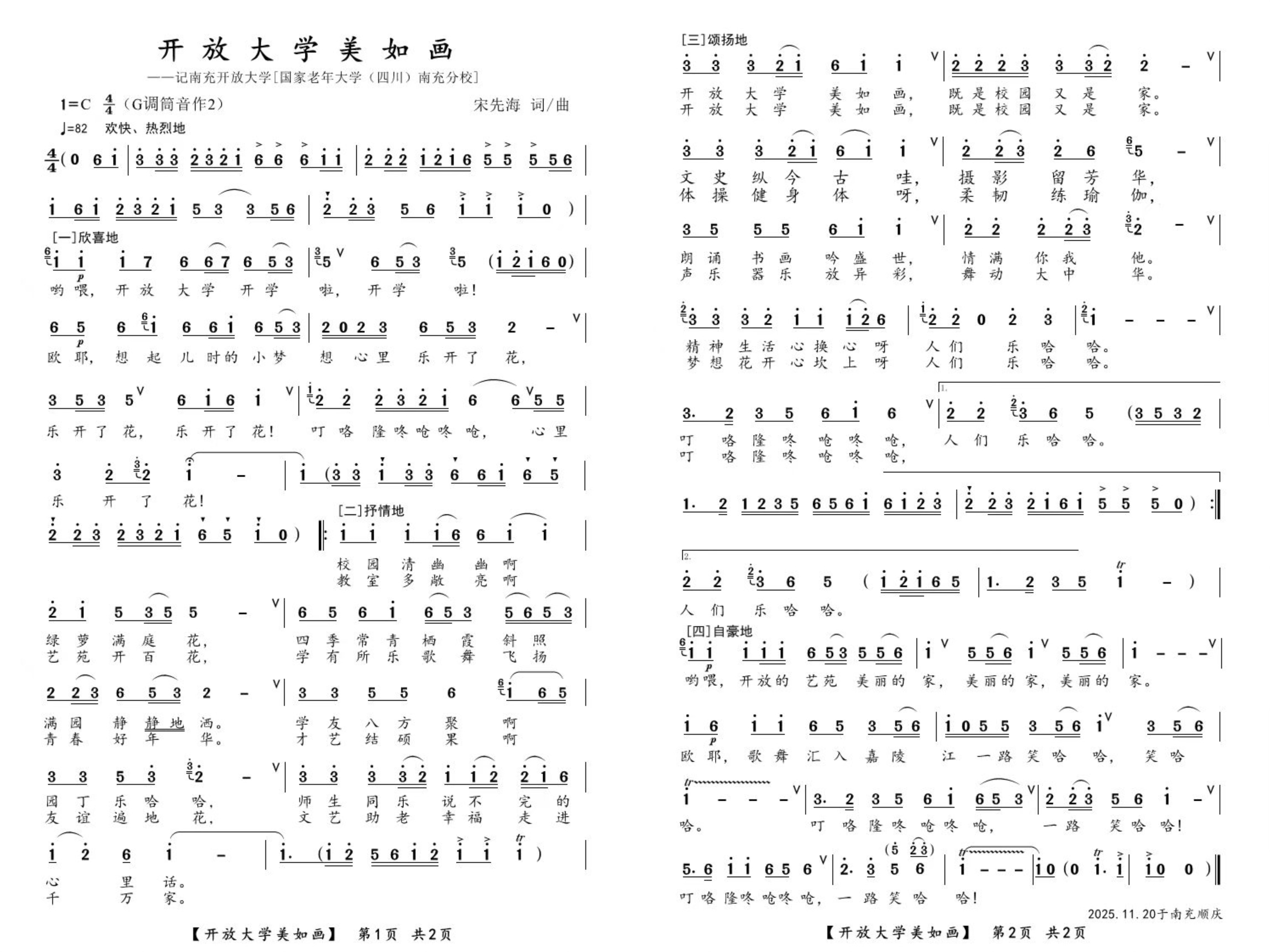這份師生情誼與藝術(shù)熱忱,還化作了宋老師的原創(chuàng)樂曲《南充開放大學美如畫》,藏著對學校的敬意與對學員的期許。