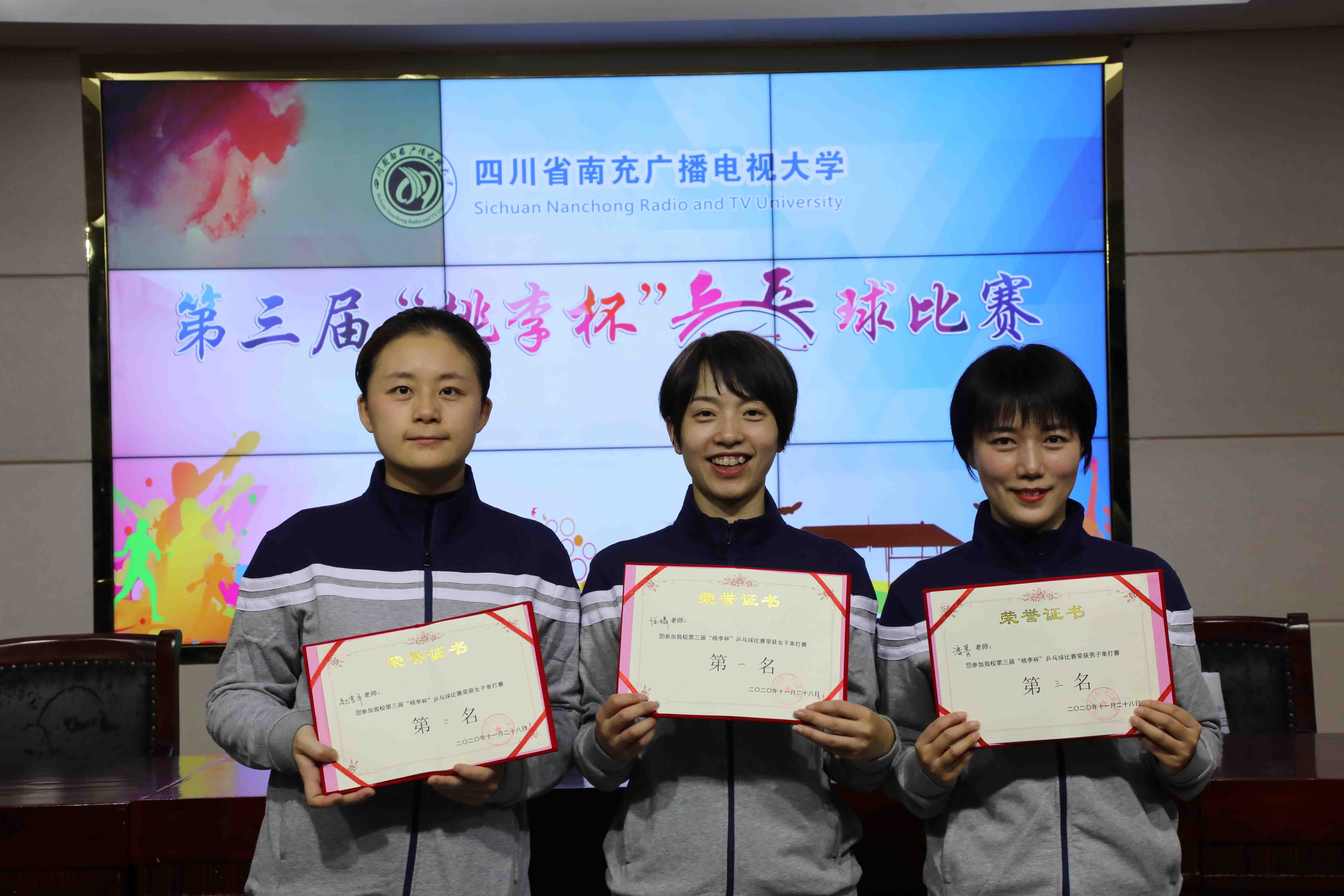 為貫徹落實中辦、國辦《關(guān)于全面加強和改進新時代學(xué)校體育工作的意見》精神,增進系統(tǒng)聯(lián)系、豐富校園文化生活,南充電大第三屆“桃李杯”乒乓球比賽于11月28-29日在學(xué)術(shù)廳順利舉行。來自全市電大系統(tǒng)的9支代表隊50余名師生參加了比賽。