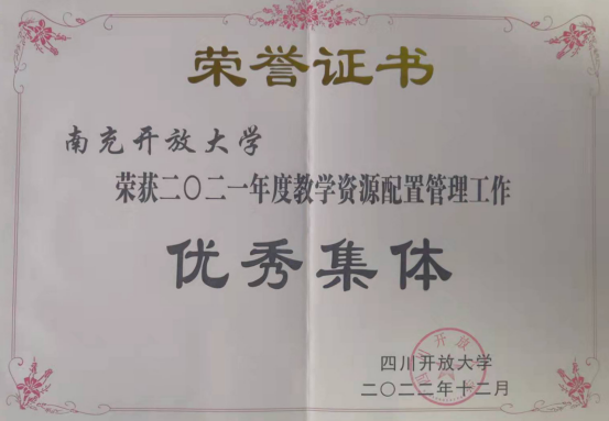 南充開放大學(xué)歷年來均獲得過省校“先進集體”或“優(yōu)秀集體”、“先進個人”等獎項。