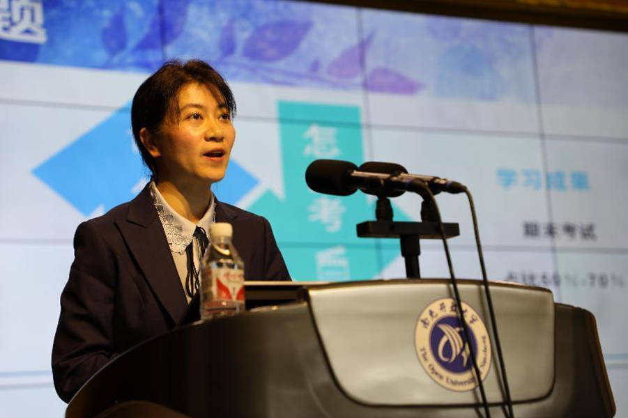 ▲直屬部副主任何茜講解《國家開放大學學習指南》現(xiàn)場