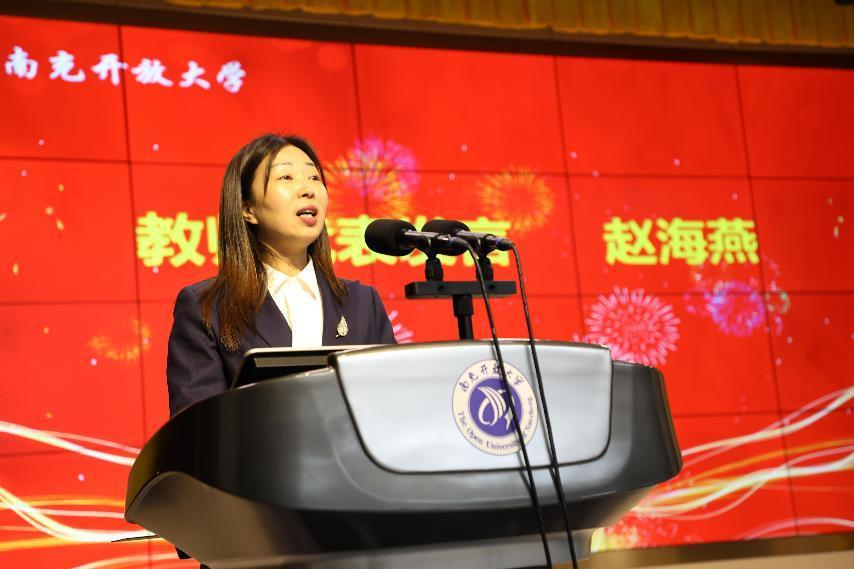 在開學典禮的最后環(huán)節(jié),由直屬部副主任、副教授何茜給新生代表講解《國家開放大學學習指南》,對開放教育的學習模式,從線上線下學習、考核方式等多角度為新同學們進行了學習方法的指引,圍繞“怎么學”“怎么考”等學生最關心的問題做了詳細解答,給全體新生上了很有收獲的開學第一課。