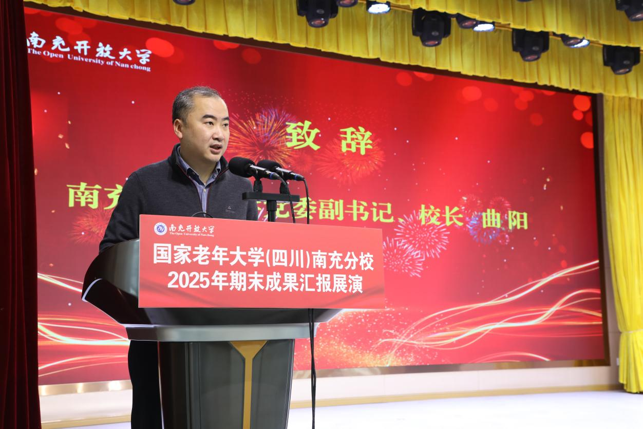 1月6日,國(guó)家老年大學(xué)(四川)南充分校2025年秋季學(xué)期期末成果匯報(bào)展演在南充開放大學(xué)多功能廳圓滿落幕。南充市教育和體育局、西華師范大學(xué)離退休處、南充市老干部活動(dòng)中心、順慶區(qū)老年大學(xué)、順慶區(qū)直屬教學(xué)點(diǎn)及各縣(市、區(qū))分校相關(guān)負(fù)責(zé)人,學(xué)校領(lǐng)導(dǎo)班子成員、全體教職工、老年教育授課教師與參演學(xué)員齊聚一堂,共賞學(xué)習(xí)成果,共品銀齡芳華。