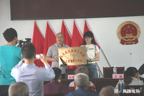 王旗和林雪梅共同為“南充電大高坪工作站社區(qū)教育學(xué)習(xí)中心”揭牌。
