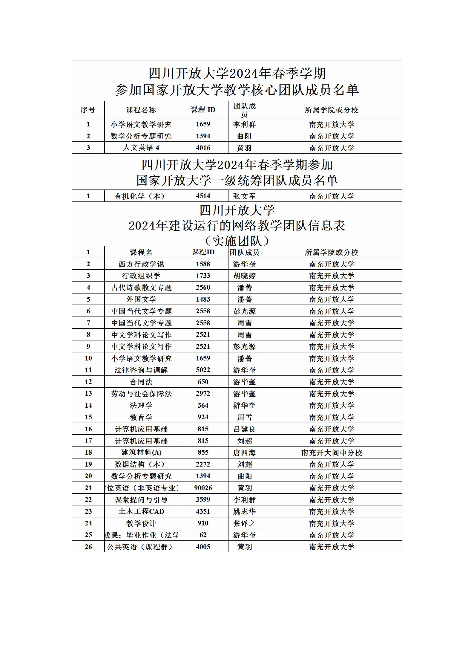 除這4位教師加入了國家開放大學(xué)教學(xué)團隊之外,我校還有13位教師加入了四川開放大學(xué)網(wǎng)絡(luò)教學(xué)團隊。