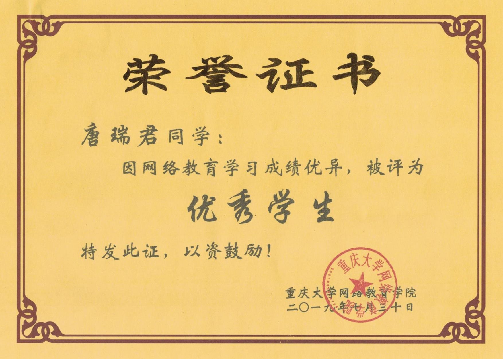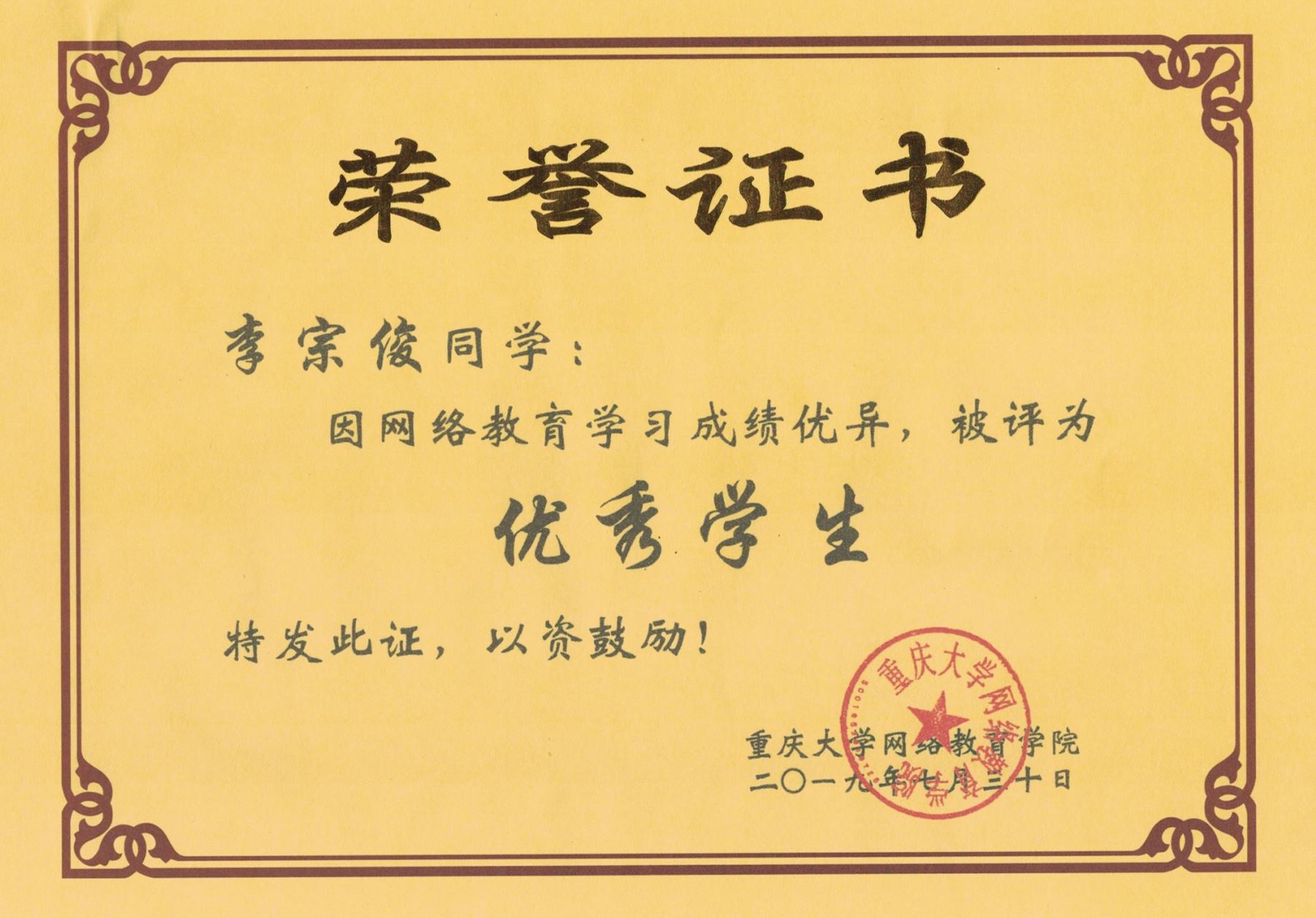今日獲悉,重慶大學(xué)網(wǎng)絡(luò)教育學(xué)院第十四屆“優(yōu)秀學(xué)生”獲獎(jiǎng)名單公布。重慶大學(xué)網(wǎng)絡(luò)教育學(xué)院南充校外學(xué)習(xí)中心學(xué)生唐瑞君、李宗俊兩位同學(xué)榮獲“優(yōu)秀學(xué)生”稱號(hào)。