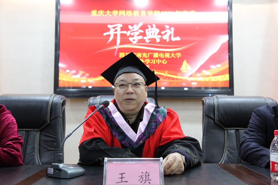 王旗代表學(xué)校對同學(xué)們報(bào)讀重慶大學(xué)網(wǎng)絡(luò)教育學(xué)院表示熱烈的歡迎!王旗在講話中介紹了遠(yuǎn)程教育發(fā)展的三個(gè)階段和網(wǎng)絡(luò)教育學(xué)習(xí)的特點(diǎn),殷切希望同學(xué)們做學(xué)習(xí)的主人,處理好工作、家庭和學(xué)習(xí)三者的關(guān)系,要和班主任老師保持密切的聯(lián)系,共同配合,順利完成學(xué)業(yè)。