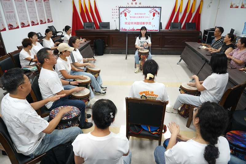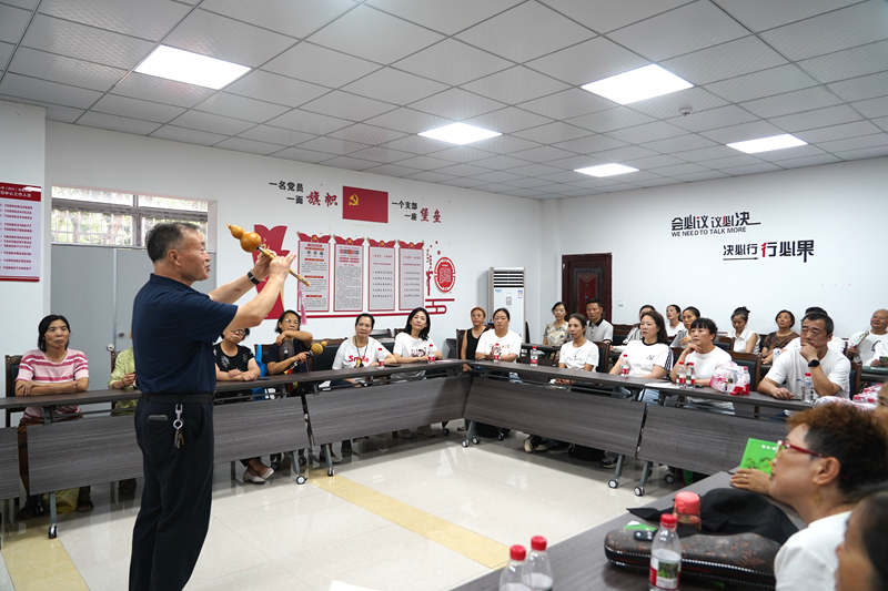 文藝表演結(jié)束后,現(xiàn)場教學環(huán)節(jié)熱鬧開啟。聲樂班中,老師耐心指導發(fā)音技巧,從基礎(chǔ)音階練習到歌曲情感表達,老人們聽得專注、學得投入,不時傳出歡快歌聲與笑聲;手鼓班內(nèi),老師親自示范節(jié)奏要點,老人們認真模仿,激昂鼓點回蕩教室,盡顯學習熱情。