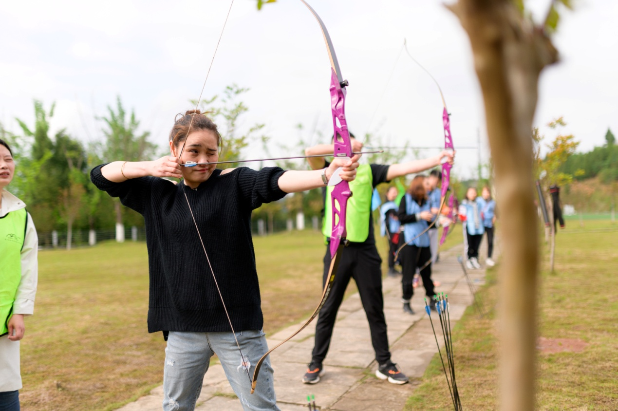 首先以“慶祝建黨百年,傳承紅色文化”為主題開展了團(tuán)隊(duì)文化建設(shè)。師生們組建了“紅星閃閃”、“中國(guó)龍”、“獨(dú)立團(tuán)”、“紅旗先鋒”等四支紅色小分隊(duì),唱響了《紅星照我去戰(zhàn)斗》《五星紅旗》等革命歌曲,每一名隊(duì)員都在隊(duì)旗上簽上了自己的名字,莊嚴(yán)承諾:不忘初心、牢記使命,將“時(shí)時(shí)學(xué)、處處學(xué)、人人學(xué)”的電大終身學(xué)習(xí)理念踐行到實(shí)際行動(dòng)中去。隨后,全體師生開展了“叢林穿越”、“弓箭射擊”、“真人CS”三項(xiàng)競(jìng)技活動(dòng)。在活動(dòng)中,大家互幫互助,相互鼓勵(lì),穿過重重關(guān)卡,成功完成了對(duì)自我的超越與挑戰(zhàn),鍛煉了意志,增強(qiáng)了自信,提升了團(tuán)隊(duì)凝聚力和戰(zhàn)斗力。