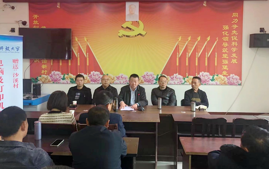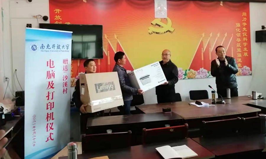 南充開放大學(xué)副校長蒲曉波、王旗代表南充開放大學(xué)為沙溪村贈送了辦公電腦及打印機。